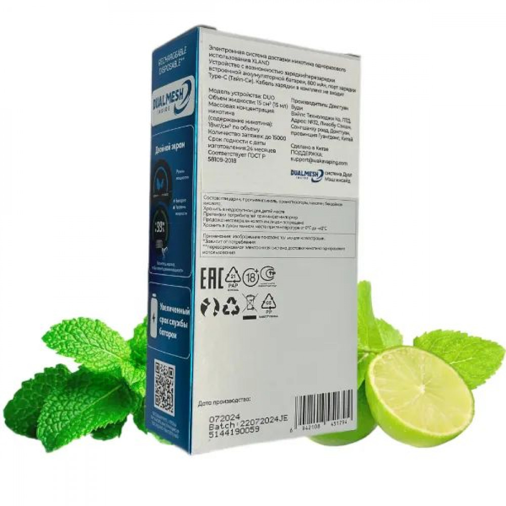 Технические характеристики WAKA XLAND 15000 - Лайм Мята